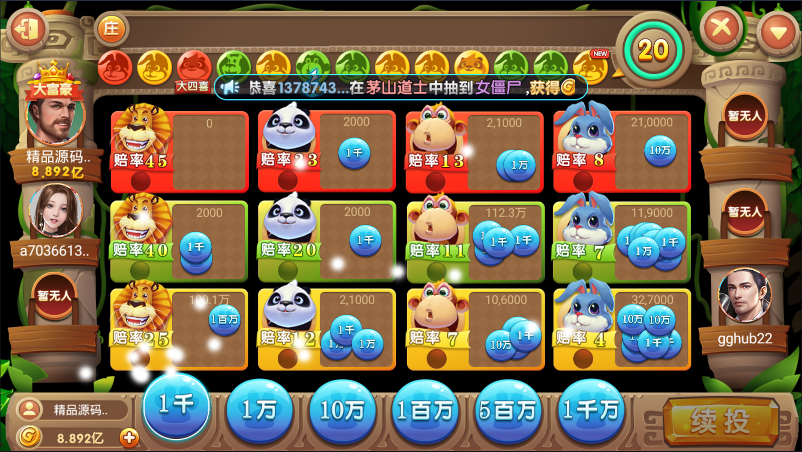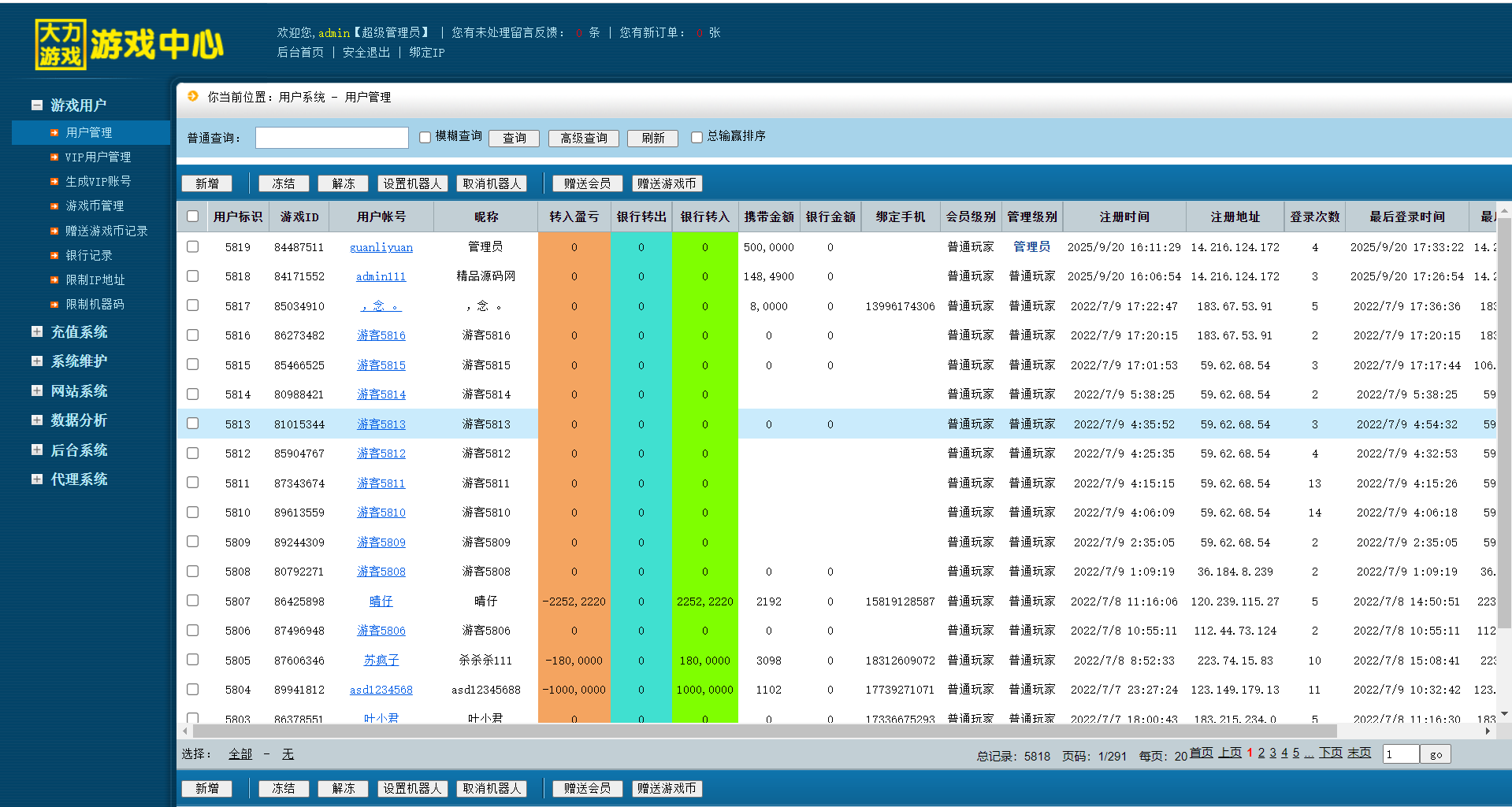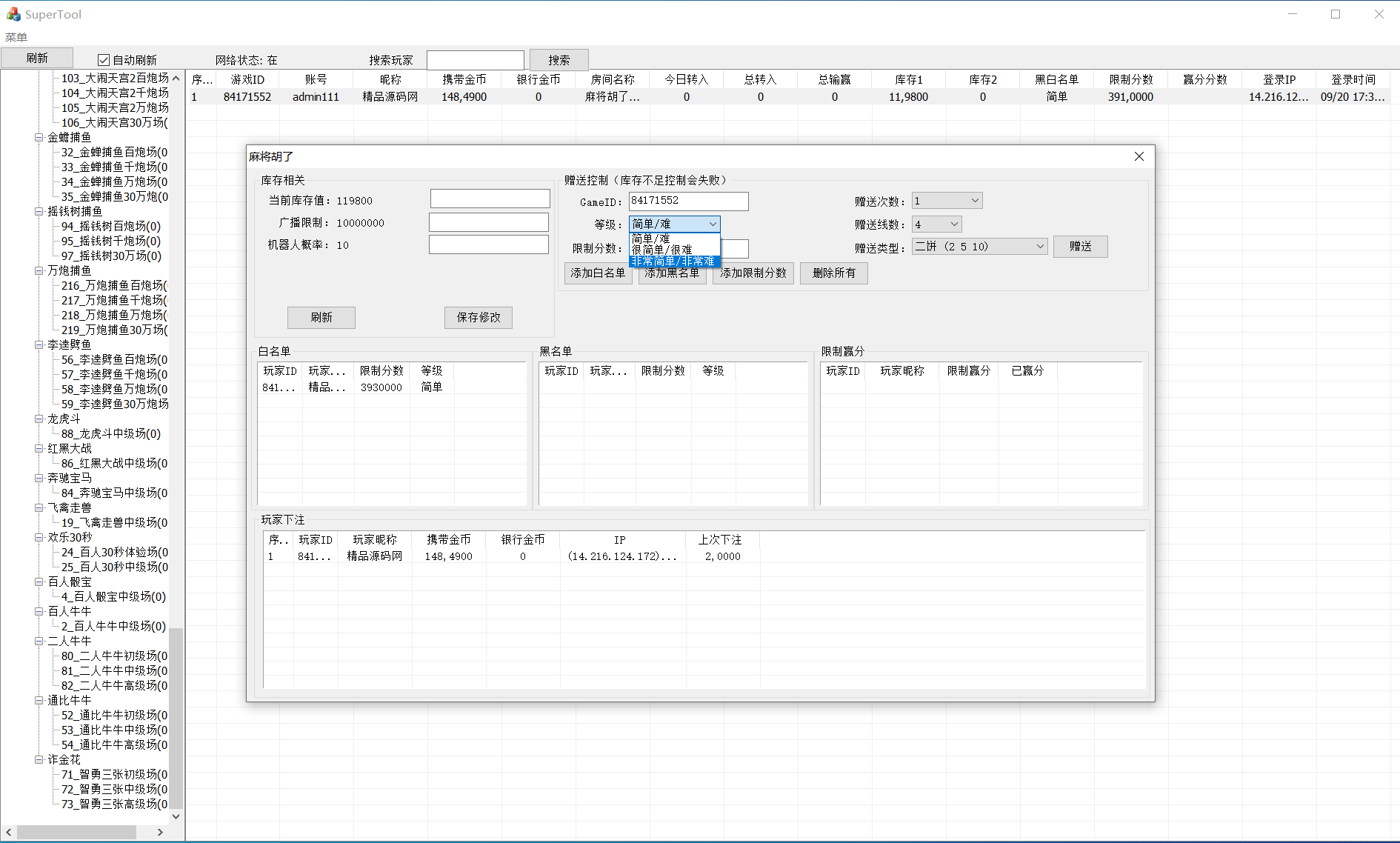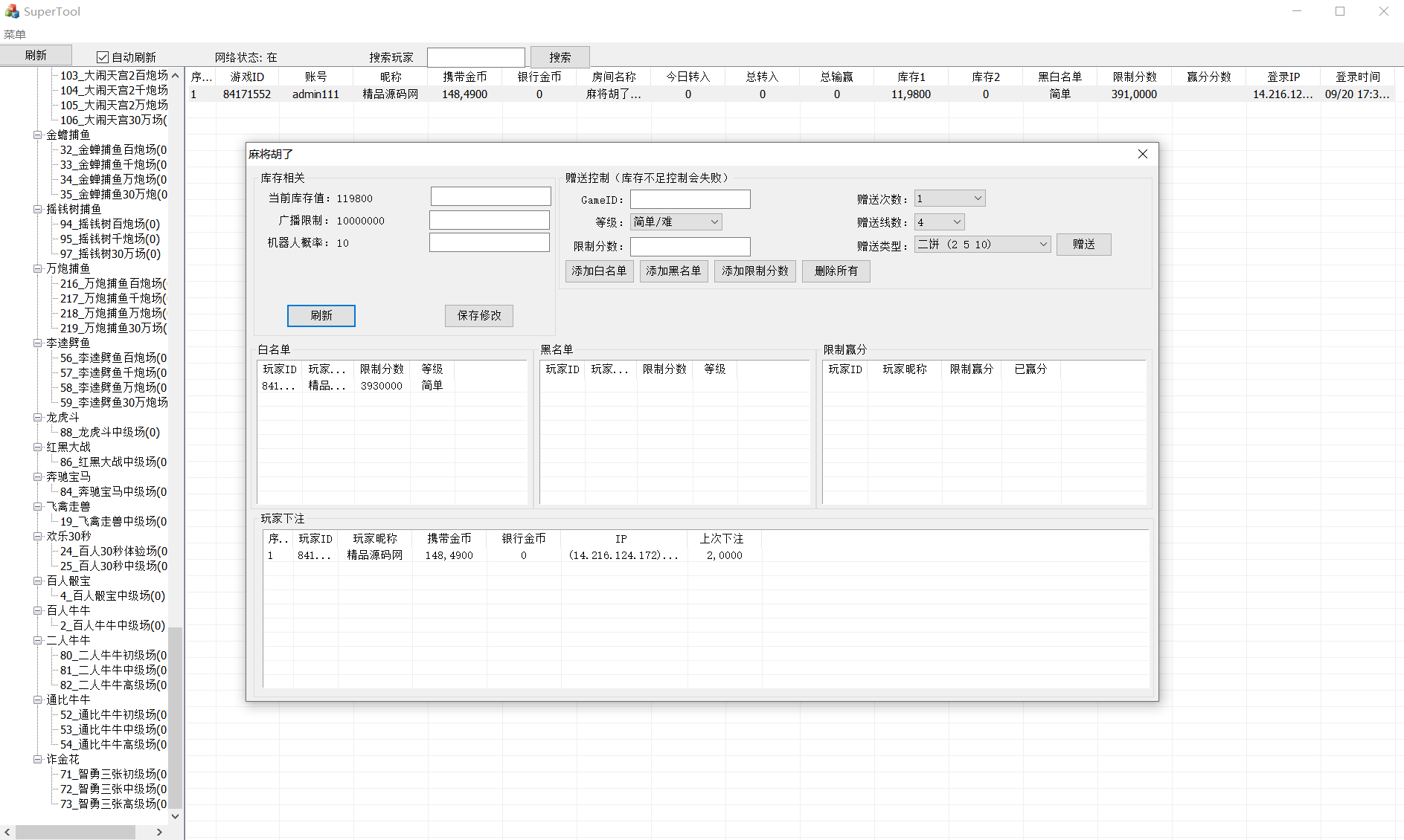彩鲸捕鱼为独立超端控制,控制端功能简单粗暴方便,功能强大,方便大家运营。特色:超端控制,控制开奖,输赢多少,难度控制,库存控制。全子游戏可用可控,棋牌,百人,捕鱼游戏都有机器人陪玩。