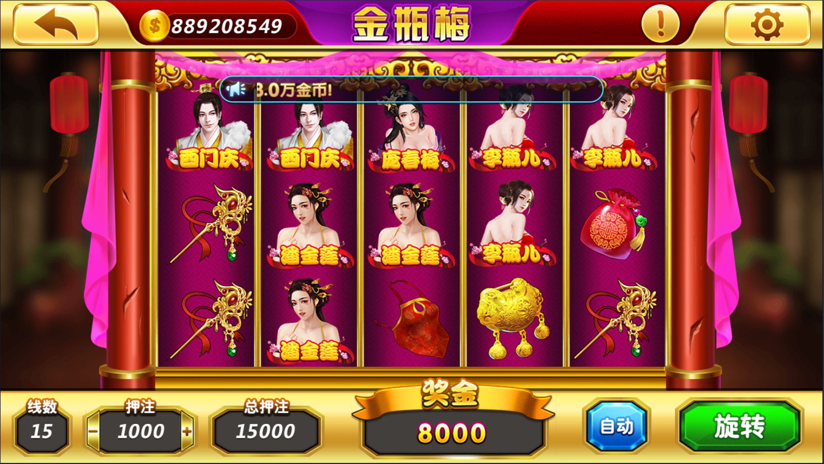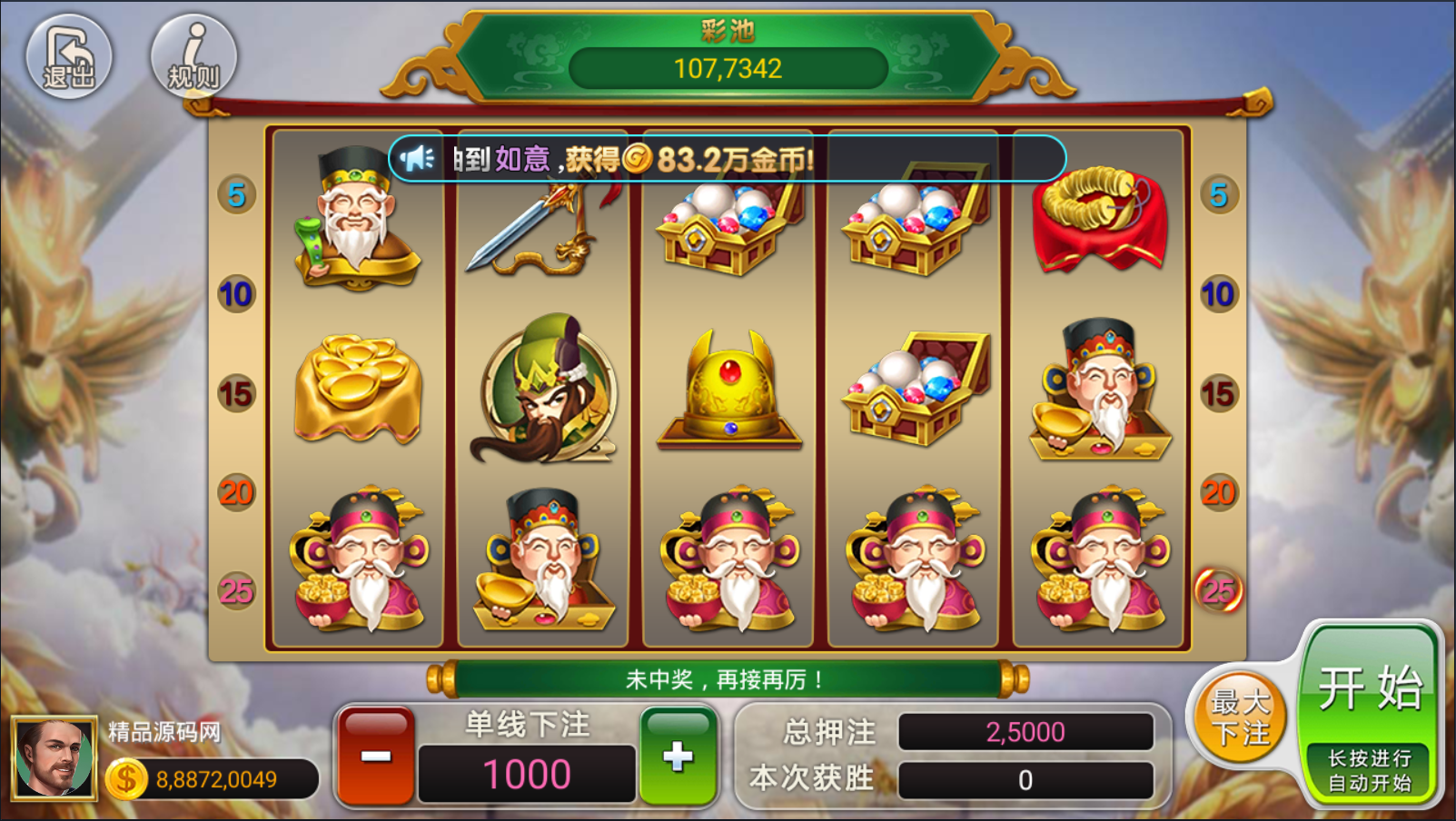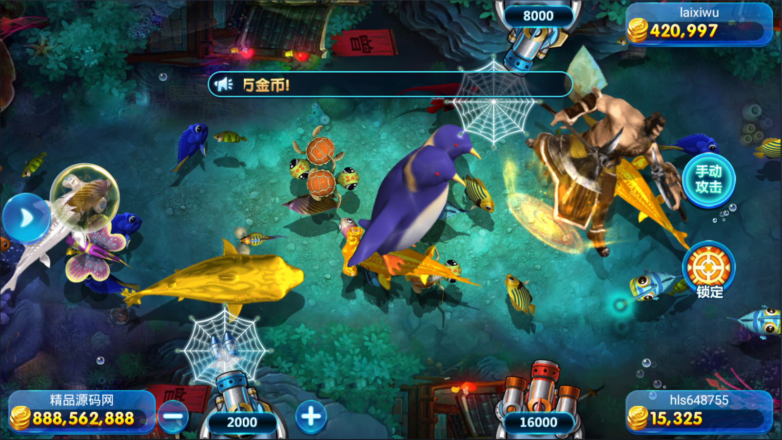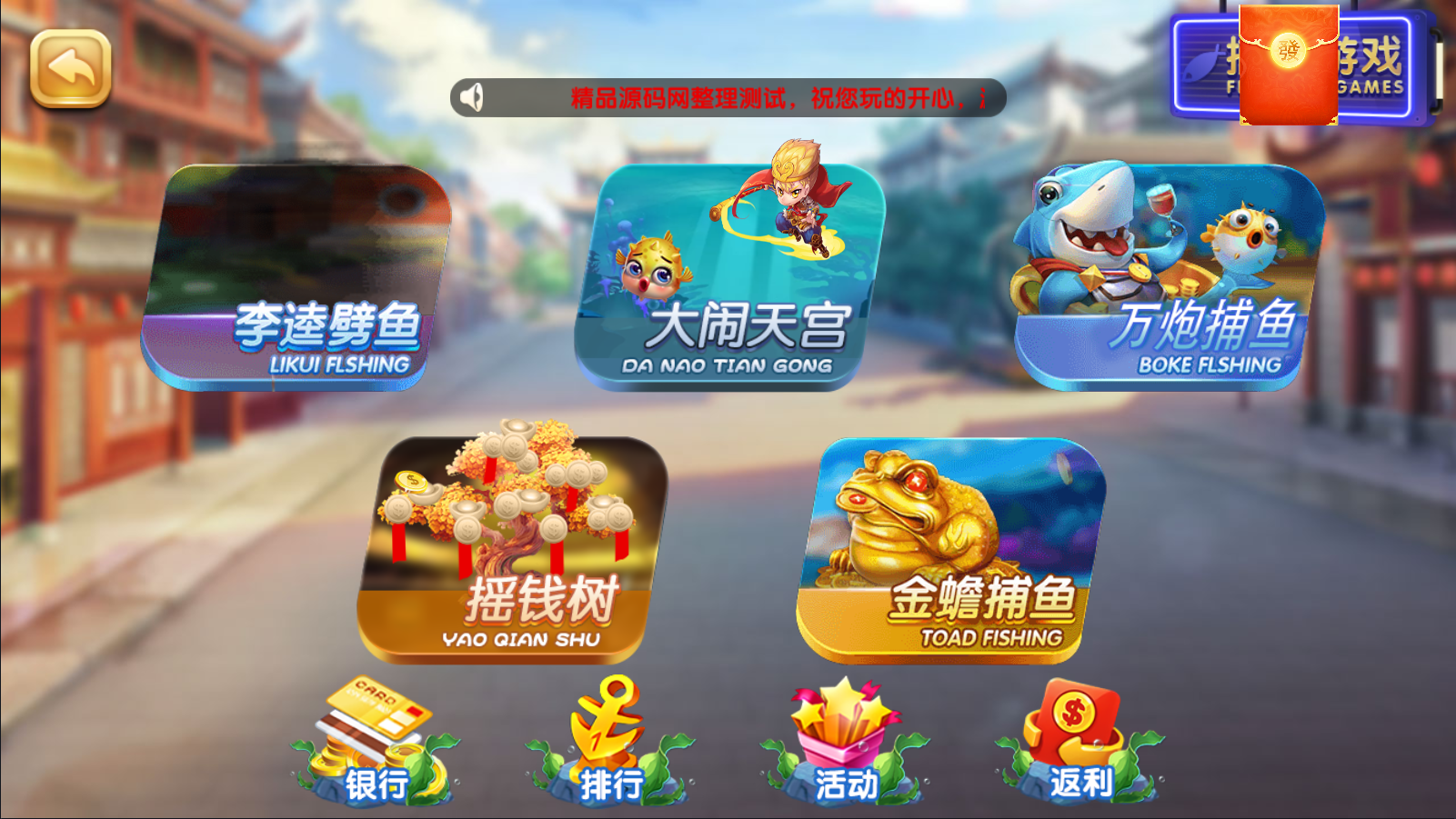 捕鱼类:李逵捕鱼,大闹天宫,万炮捕鱼,摇钱树,金蟾捕鱼。