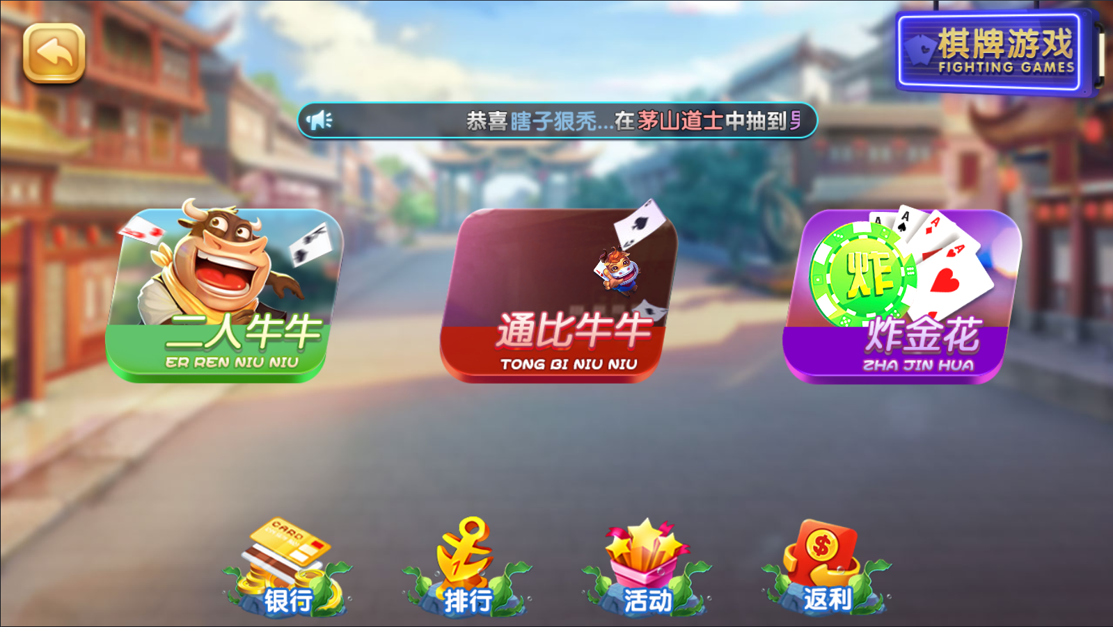 棋牌类:二人牛牛,同比牛牛,炸金花。