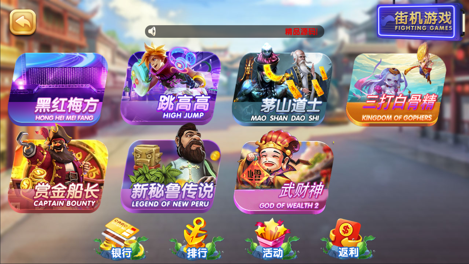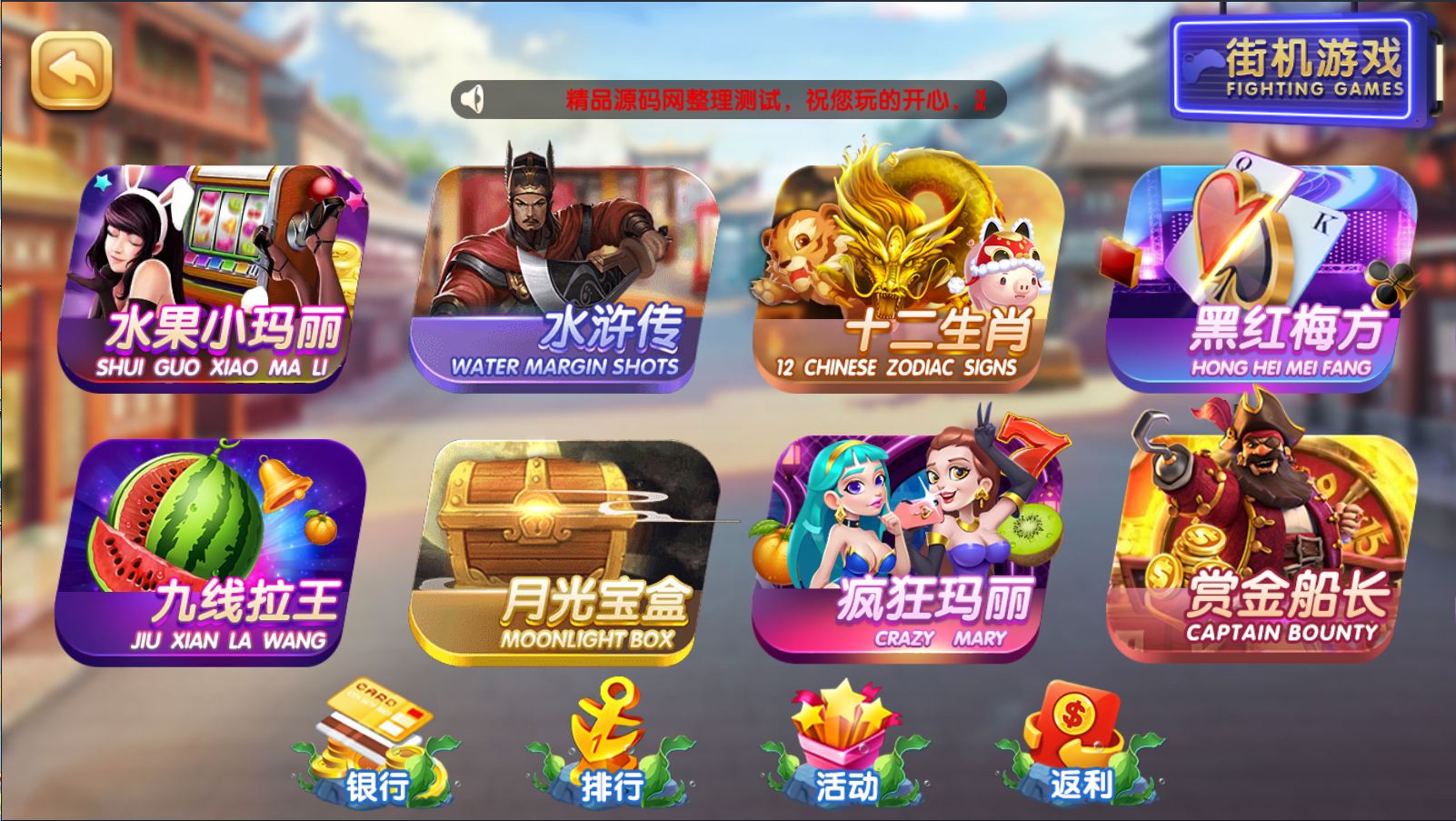 街机类:水果小玛丽,水浒传。十二生肖,黑红梅方。九线拉霸,月光宝盒,疯狂玛丽,赏金船长,跳高高,茅山道士,新密鲁传说,武财神,三打白骨精。
