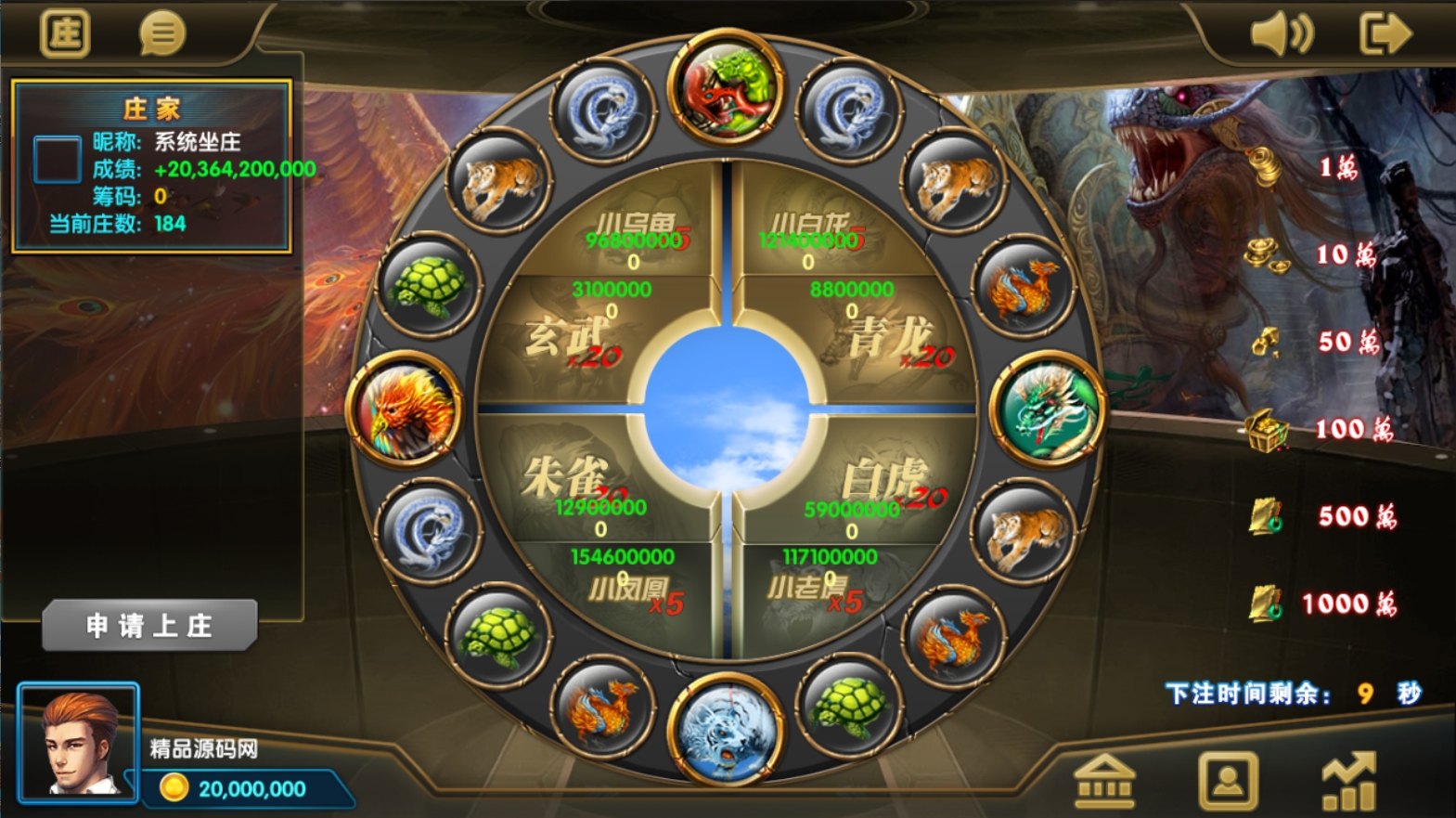 包含游戏:飞禽走兽 神兽转转 李逵捕鱼 龙王捕鱼 豪车漂移