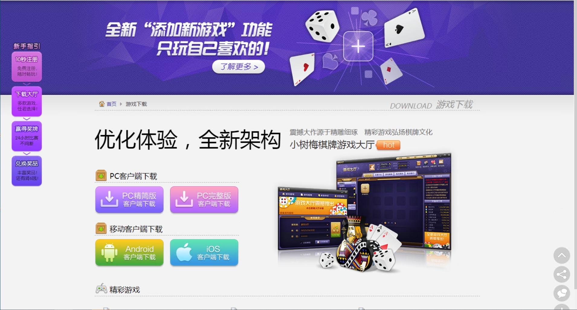 三端齐全,有PC端大厅 安卓端 和苹果 PC控制 很不错的一款游戏,感兴趣的朋友自行下载吧